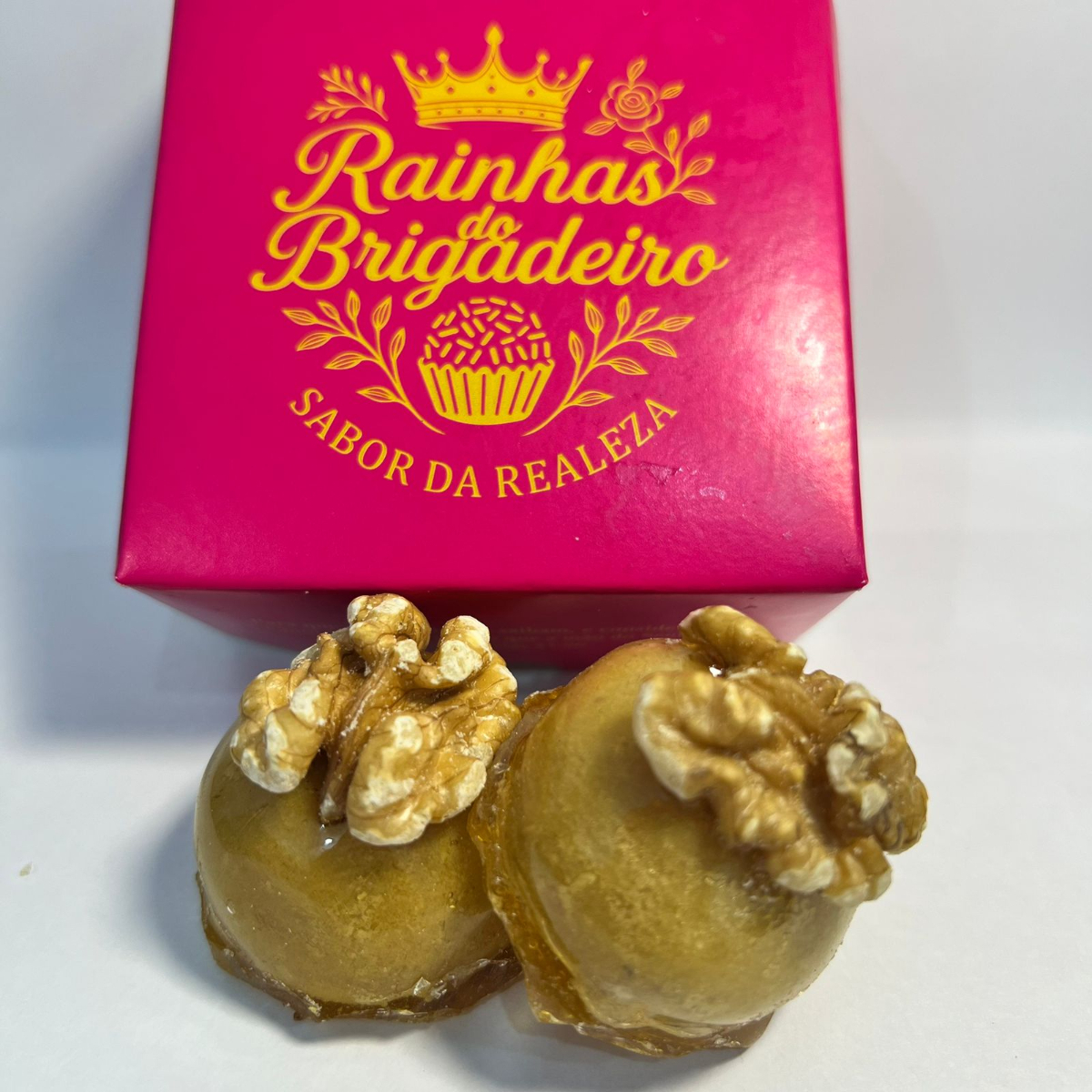 brigadeiro de nozes, cobertura de caramelo e nozes
