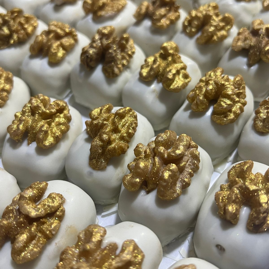 Um clássico sofisticado para os paladares mais exigentes! O nosso camafeu é feito com uma base suave de nozes, coberto por uma fina camada de chocolate branco cremoso. Uma verdadeira joia para os amantes de doces finos.