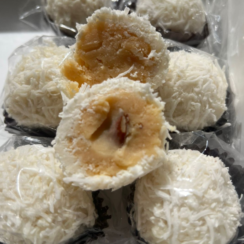 Uma sobremesa leve e elegante! Nossa trufa é recheada com um delicioso creme de coco e amêndoa. Com uma textura suave e um sabor que derrete na boca, é a sobremesa perfeita para os amantes de sabores clássicos e refinados.