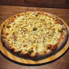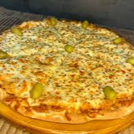 Molho de tomate caseirinho, frango desfiado, calabresa, palmito, milho, mussarela, bacon, oregano e azeitona.