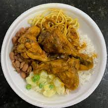 Arroz, Feijão, Frango ao Molho, Guarnição do Dia e Salada.