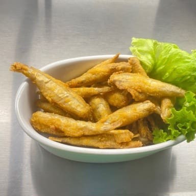 Uma porção tentadora de manjubinhas fritas, crocantes por fora e macias por dentro. ~Acompanha molho de sua preferência + Fatias de Limão. Peça já e desfrute do melhor peixe frito da região!