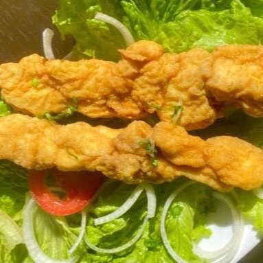 Preparamos pedaços suculentos de cação, que são delicadamente temperados com uma combinação de temperos selecionados. Os pedaços são cuidadosamente espetados, empanados e fritos até atingirem um ponto perfeito de cozimento, resultando em uma carne macia e cheia de sabor. Cada mordida é uma viagem à praia. Escolha o molho de sua preferência para acompanhar.