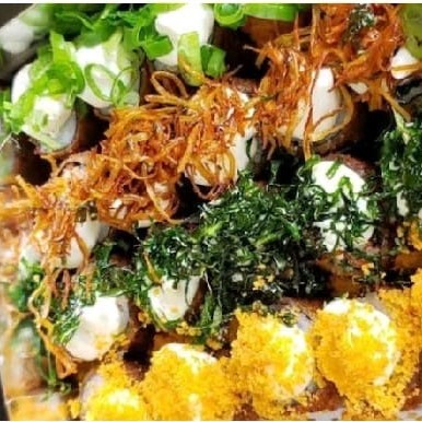 40 Hotrolls com couve ou Cebolinha, com aprox 1,5 Cm de Diametro e 1 Cm de Altura Temaki com Aprox 07 Cm e pesa aprox 100 G Cada Item pesa aprox. 16 G e serve 02 Pessoas Não Acompanha Hashi e Molho Obs. Itens caramelizados com taré, caso não gostaria favor informar