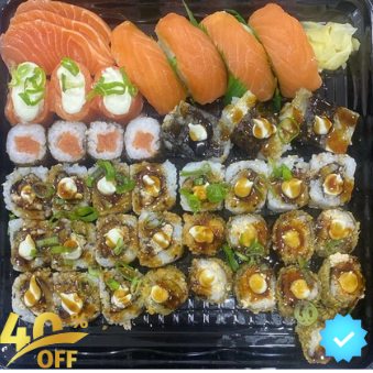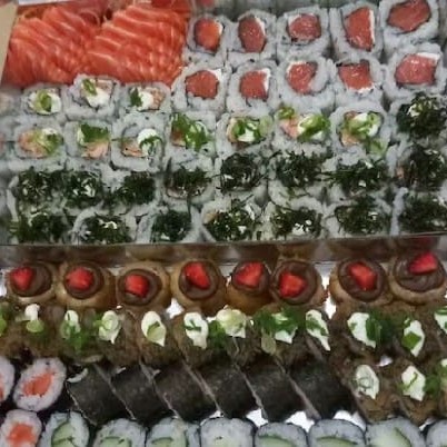 20 Hot Rolls 07 Hot Rolls Skin 15 Uramakis California 10 Salmonmakis 05 Uramakis de Salmão 10 Uramakis grelhado 05 Niguiris Salmão 05 Niguiris Skin 03 Sashimis de Salmão 05 Banana c/ Chocolate 05 Uramaki Skin 15 Kapamaki