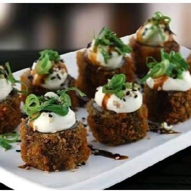 40 Hot Rolls Caramelizados Hot Rolls com aprox 1,5 Cm de Diametro e 1 Cm Item pesa aprox. 16 G e serve 02 Pessoas Não Acompanha Hashi e Molho Obs. Itens caramelizados com taré, caso não gostaria favor informar