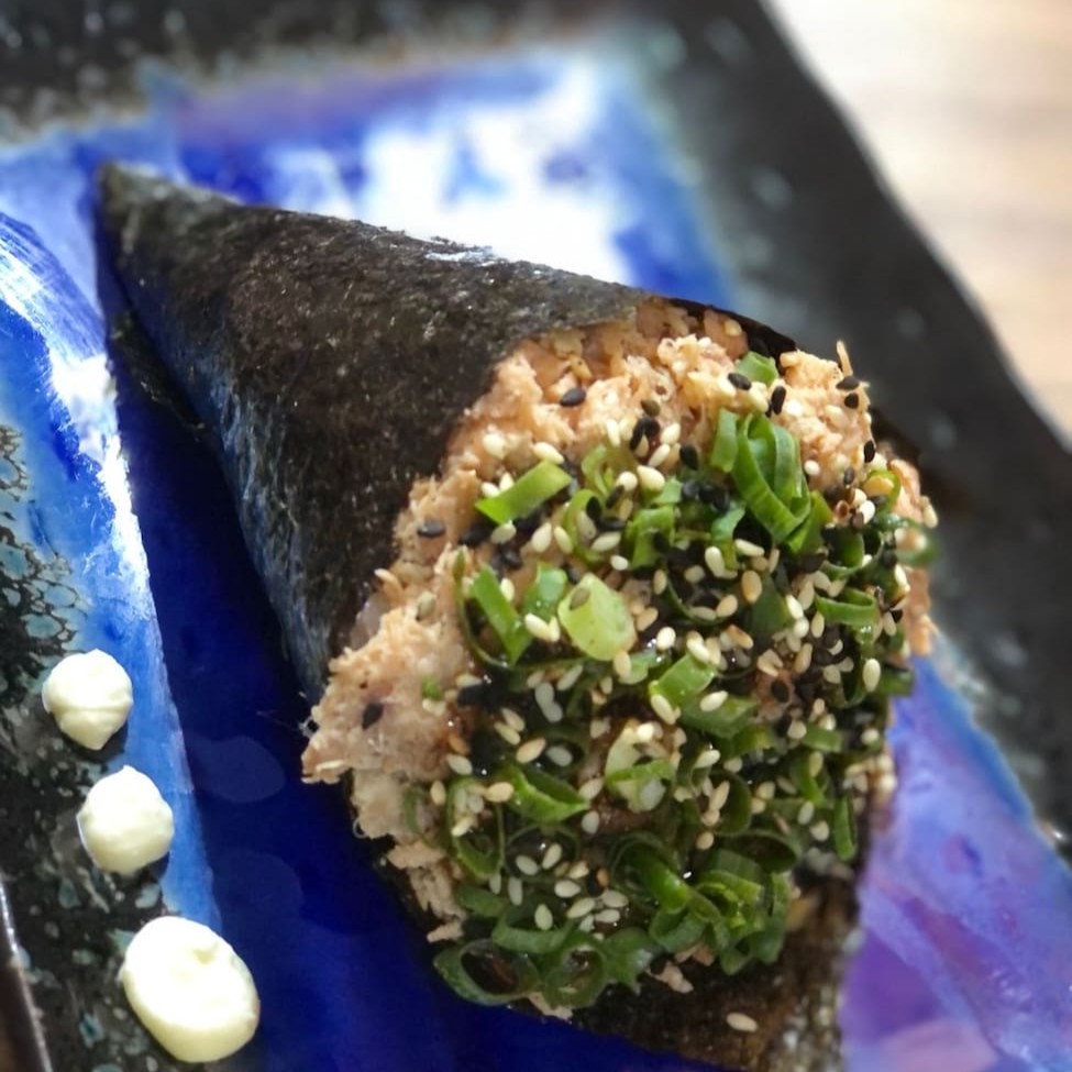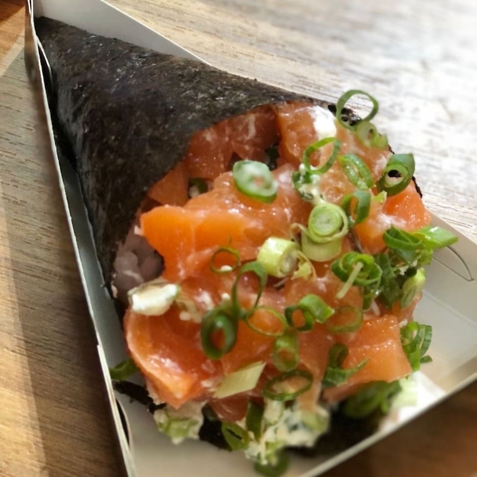 Temaki com salmão Cru Completo com Cream Cheese e cebolinha