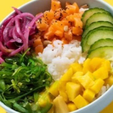Poke Tradicional 300 G - Acompanha Salmão Cru, Manga, Sonomono, Couve Chrispy e Kani Caso queira pode acrescentar mais itens do seu gosto
