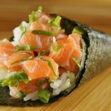 Temaki de salmão cru aproximadamente 100 G