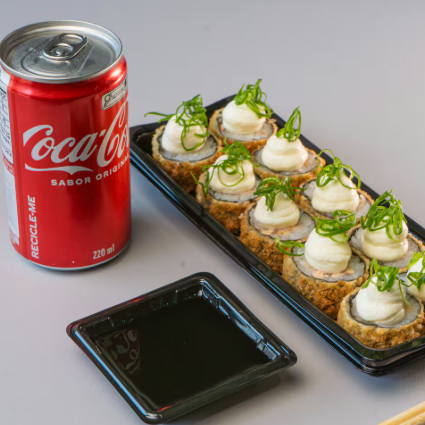 01 Refri lata 350 Ml 15 Hot Rolls com Cream Cheese e Cebolinha 10 Hot Rolls com Couve Chrispy
