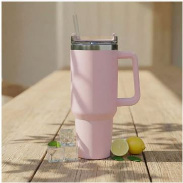 Copo Térmico Cor Rosa Claro Grande 1200 Ml Canudo Parede Dupla