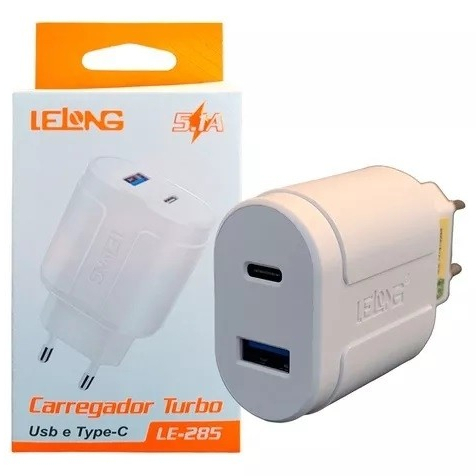 Fonte Duas Entradas Carregador Tipo C E Usb Lelong Le-283
