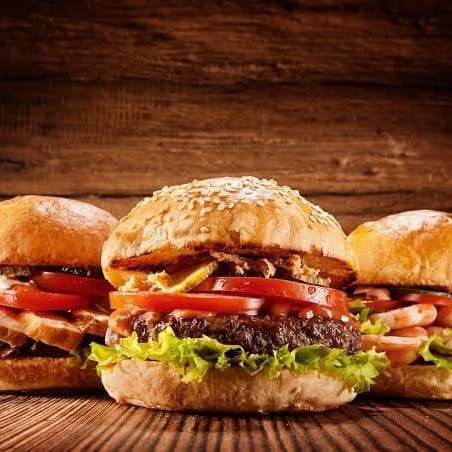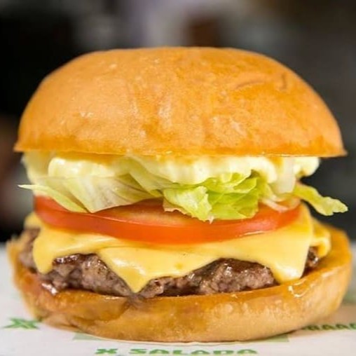 Hambúrguer Artesanal de 90g, Queijo, Maionese da casa bem temperada, alface e tomate fresco no pão de hambúrguer selado.