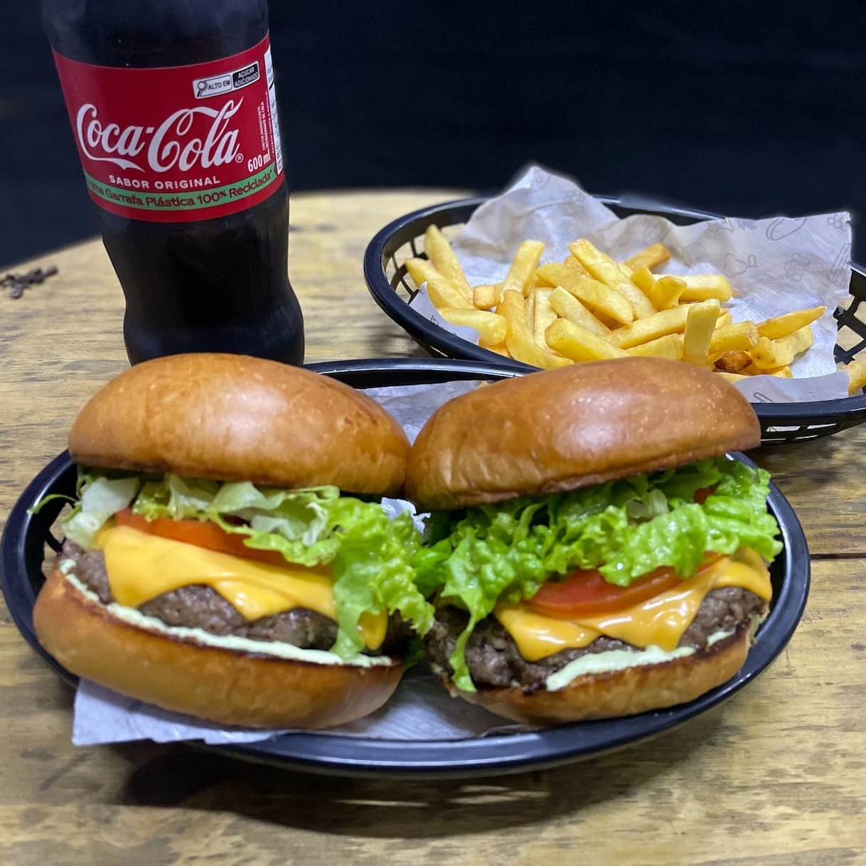 3 lanches com hambúrguer artesanal de 150g à sua escolha com batata de 300g + Coca-Cola gelada de 2 litros. A refeição perfeita para toda a galera! Escolha os lanches que mais gostam Peça agora e saboreiem juntos essa combinação deliciosa!