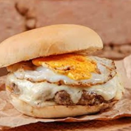 Hambúrguer Artesanal de 90g, Queijo, Ovo, Maionese da casa bem temperada, alface e tomate fresco no pão de Hambúrguer selado.