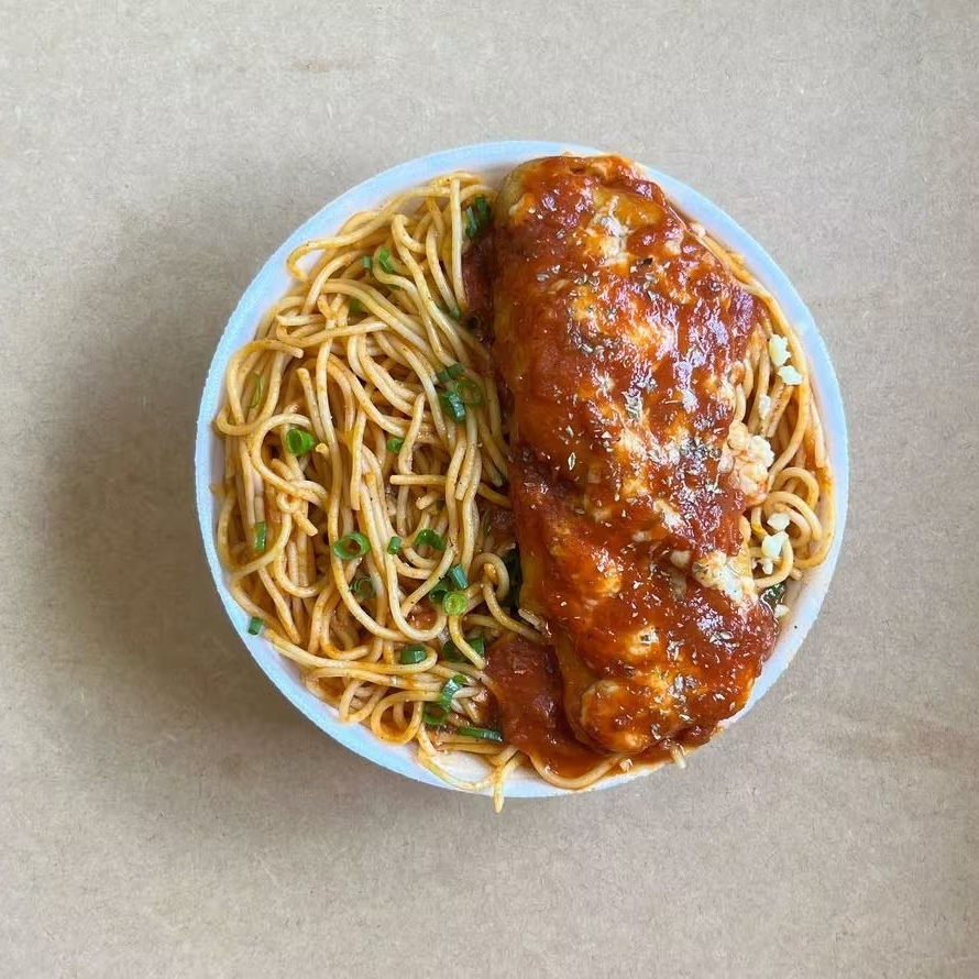 Marmita Parmegiana De Frango C Espaguete