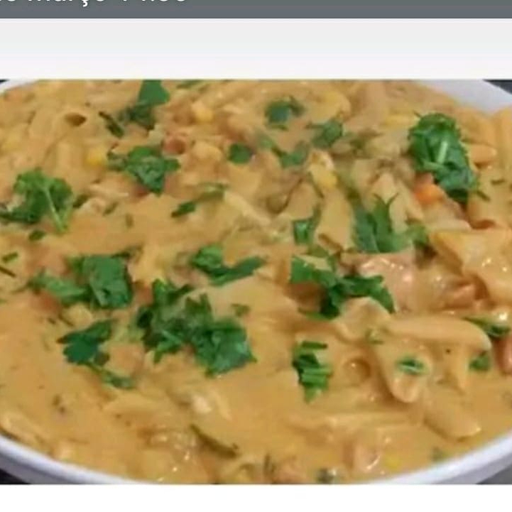 Uma maravilha de macarrão com milho azeitonas requeijão queijo presunto frango com molho
