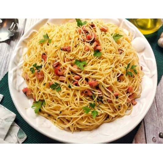 Prove nosso irresistível Espaguete Alho e Óleo com Bacon! Massa fina e leve, salteada no azeite com alho dourado na medida certa e pedaços crocantes de bacon, que adicionam um sabor defumado e delicioso. Simples, sofisticado e cheio de sabor!