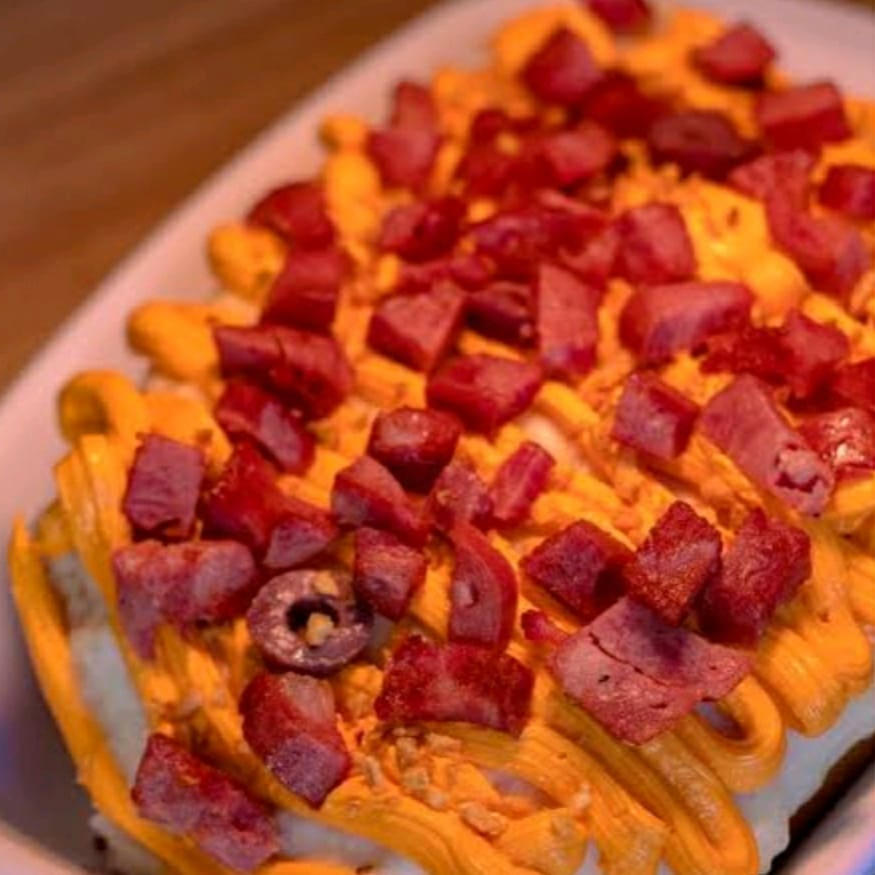 Deliciosas batatas recheadas(3 unidades) feita com:Bacon,Cheddar,Catupiry,Queijo,Requeijão,Presunto e Queijo ralado e carne moída