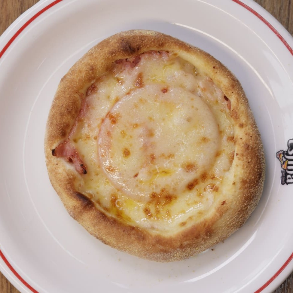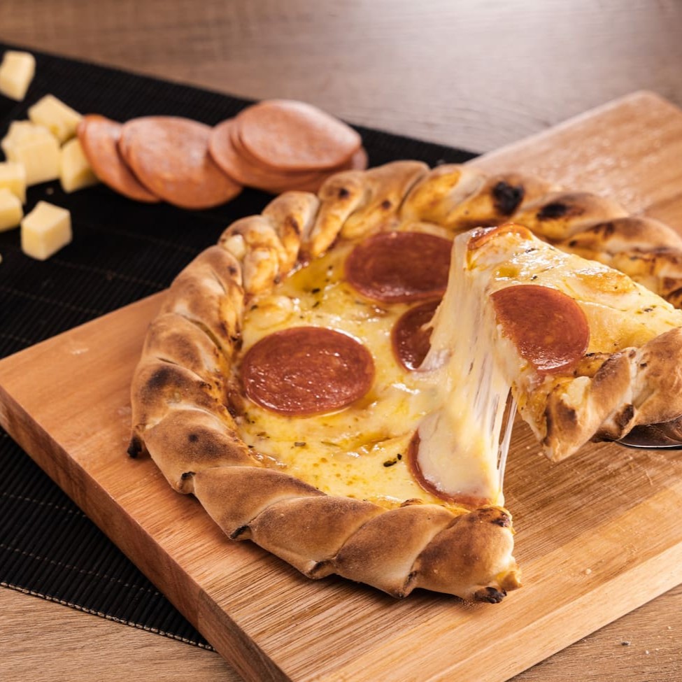 Calabresa, Catupiry, bacon frito, ovo, mussarela, presunto, maionese e salada
