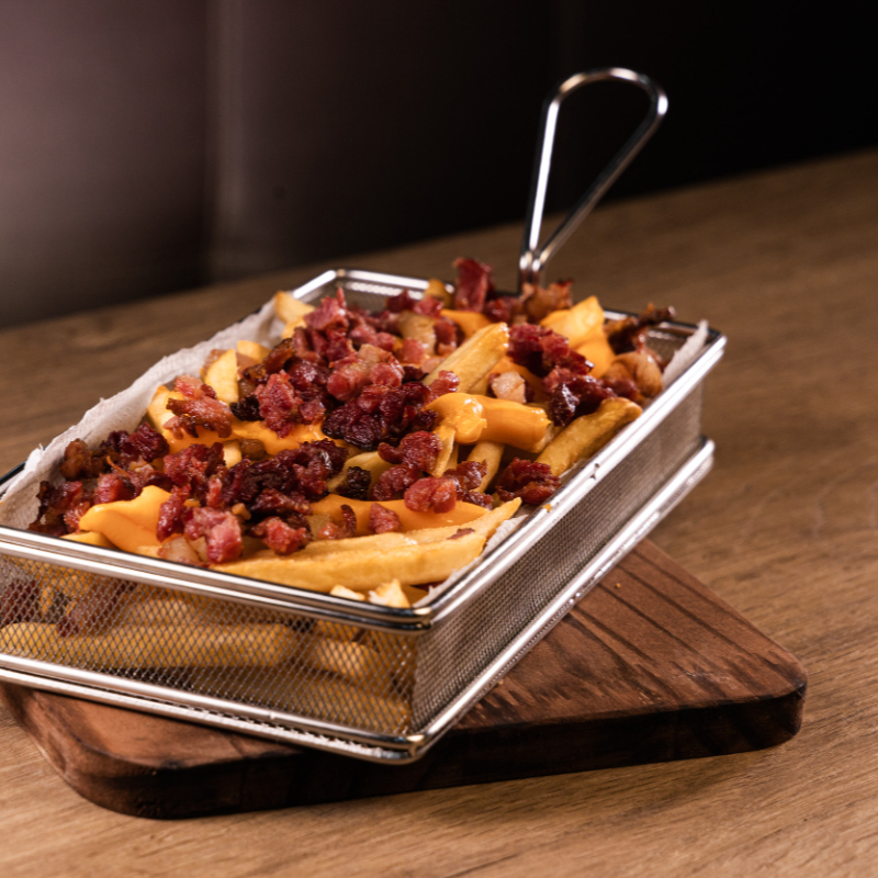 Fritas com cheddar e bacon