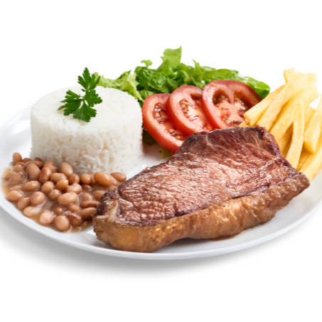 Arroz, feijão, batatas fritas, macarrão, ovo e salada