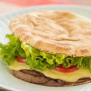 Hambúrguer, mussarela, salada e maionese