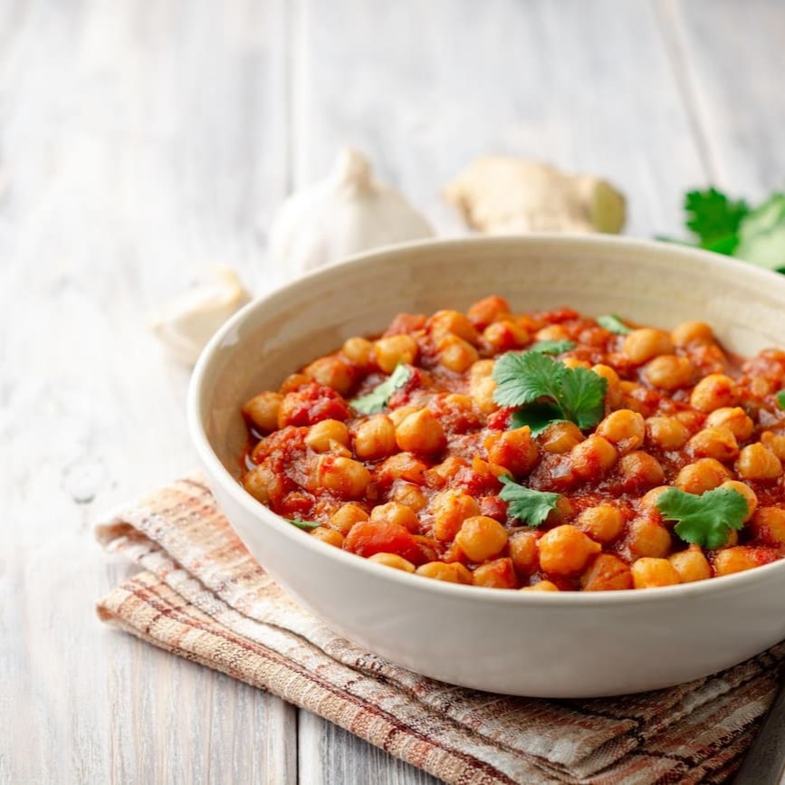 Grão de bico cozido ao molho de masala.