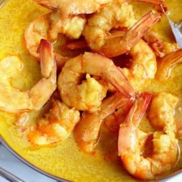 Camarão preparado ao molho curry.