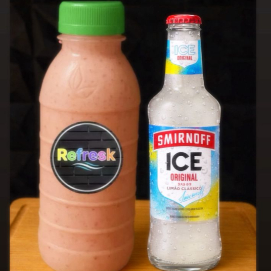 Acompanha 1 canudo e 1 copo de 700ml pra você finalizar sua bebida Feito com Morango Leite condensado Bastante gelo Smirnoff ice e Sorvete