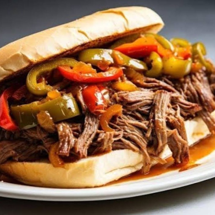 Lagarto desfiado com pimentões verde amarelo vermelho tomate ,molho de tomate,salsinha,cebola picada,alho picado refogados no azeite , pão francês e maionese
