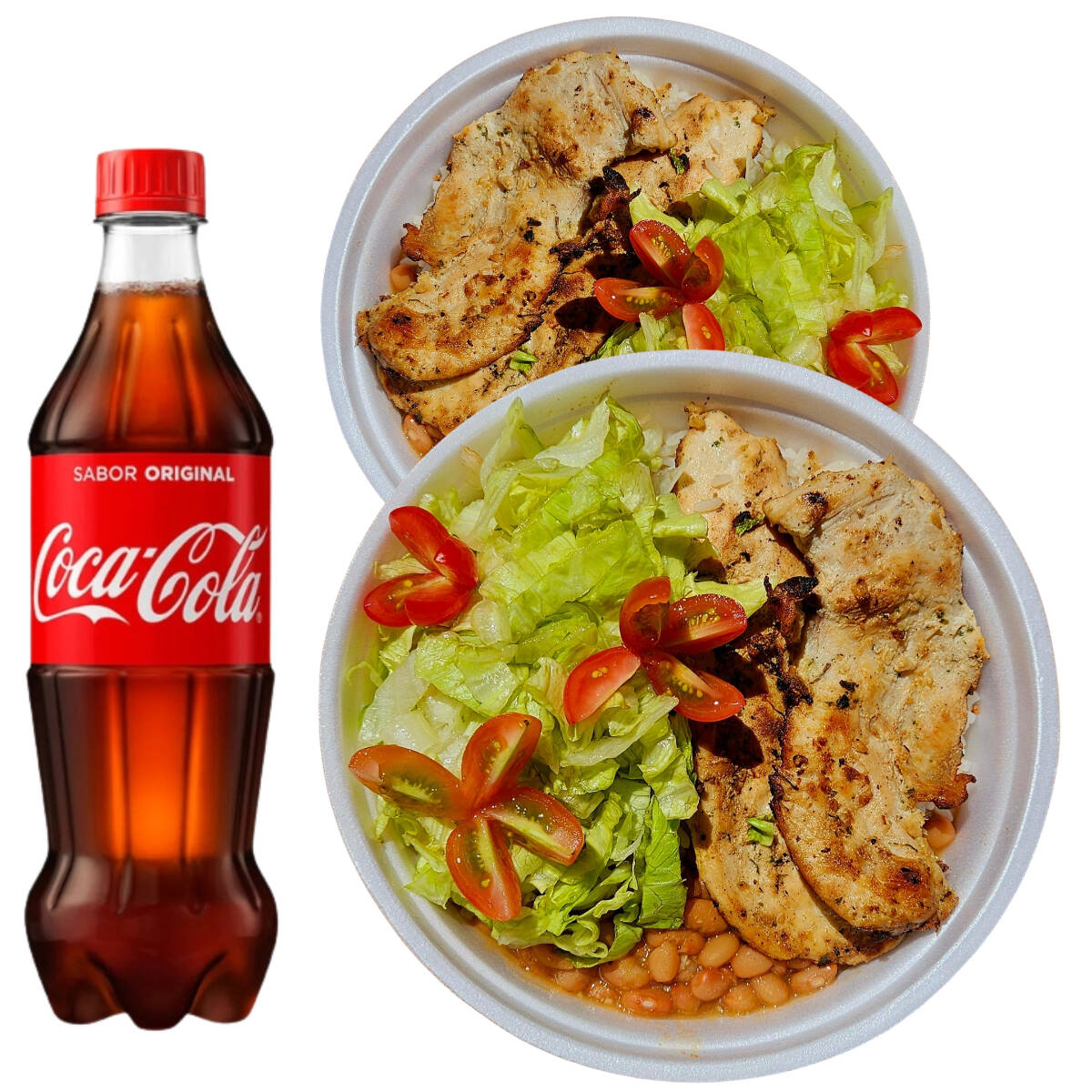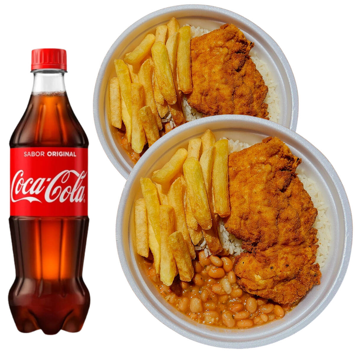Acompanha arroz feijão e coca cola 600ml