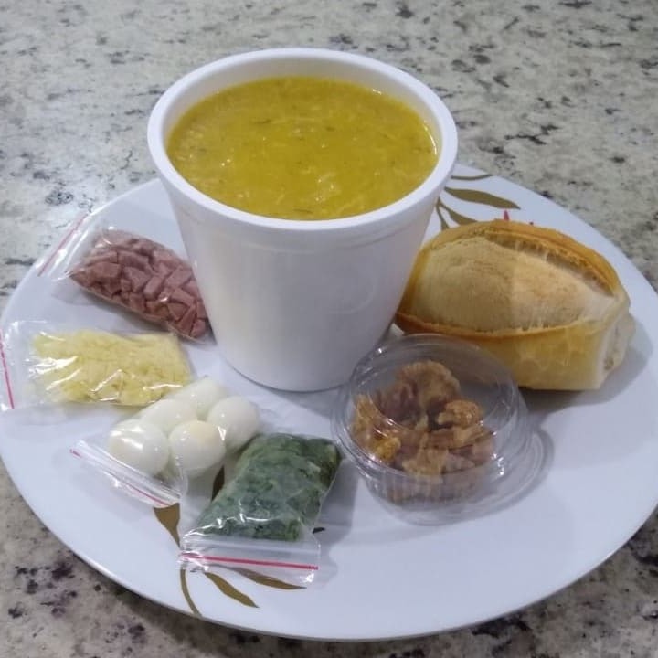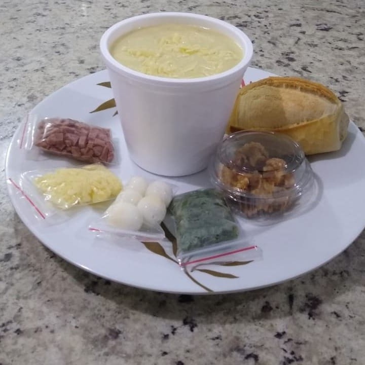 250ml, sabor a escolher ( produto congelado) preparo: (8 minutos no micro-ondas ou adicionar 50ml de água e deixar ferver no fogão) os acompanhamentos são pedidos à parte e serão enviados conforme a compra dos mesmos.