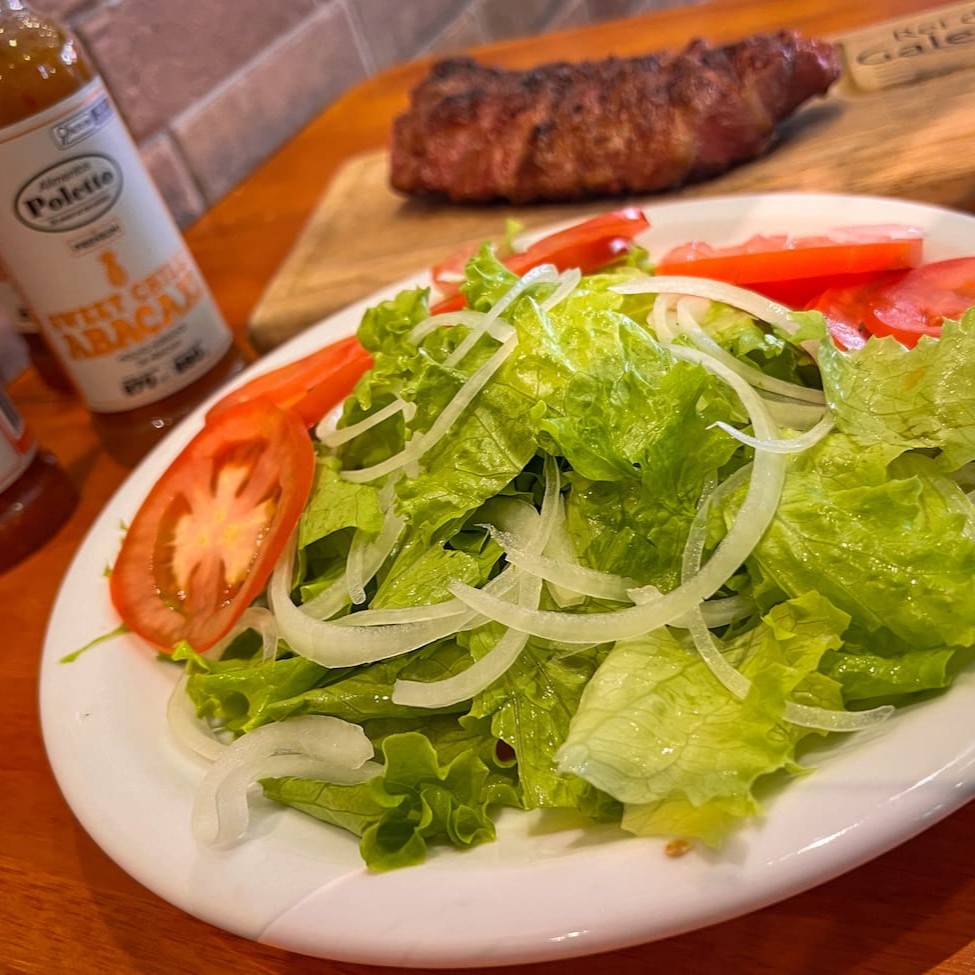 Salada de alface, tomate e cebola acompanhada de 150 a 170grs de picanha