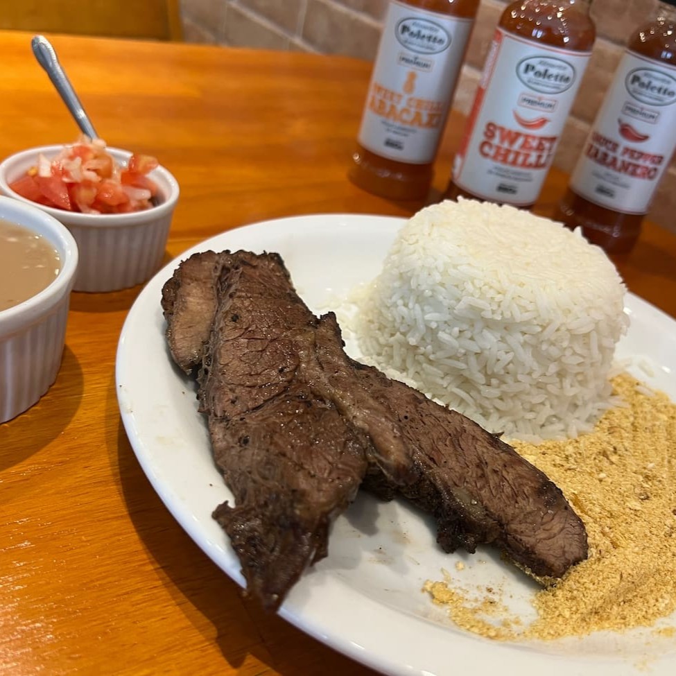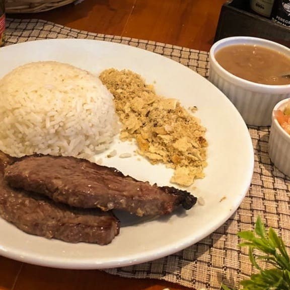 Acompanha arroz, feijão, farofa e vinagrete.