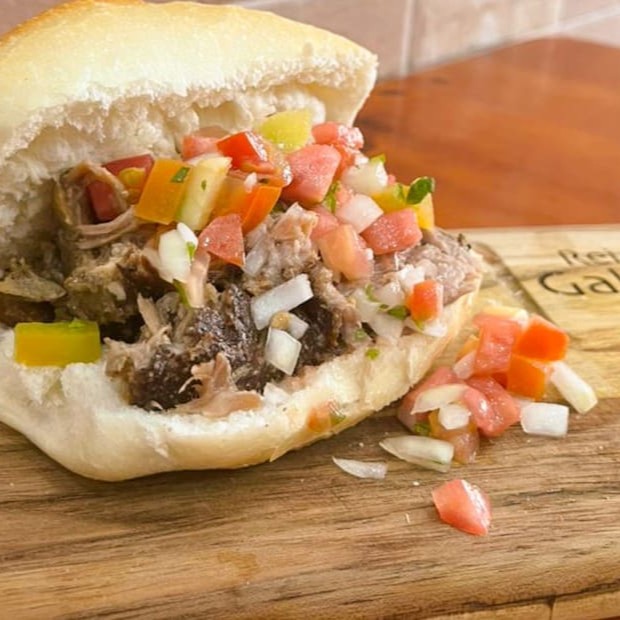 Corte de carne a sua escolha com vinagrete e maionese no pão francês.
