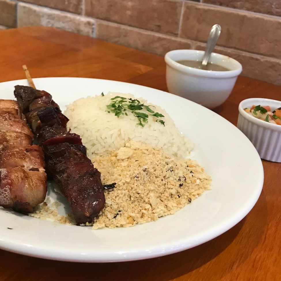 1 espetinho escolhido pelo cliente, Arroz, Feijão, Vinagrete e Farofa