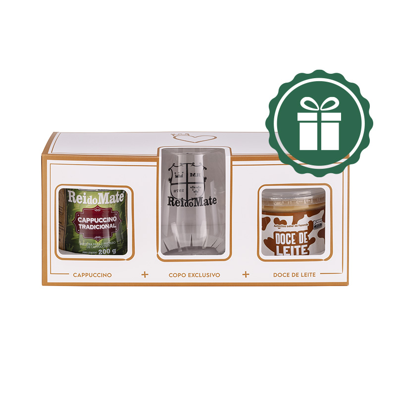 Acompanha nosso Doce de leite, com receita artesanal, sem amido - 100% mineiro e o nosso Cappuccino Tradicional (lata 200ml), com um copo exclusivo para você.