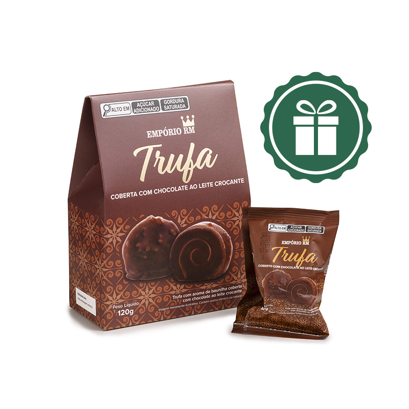 Leve 4 unidades da nossa trufa com aroma de baunilha coberta com cobertura de chocolate ao leite crocante.