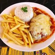 Berinjela a parmegiana acompanha Arroz, batata frita