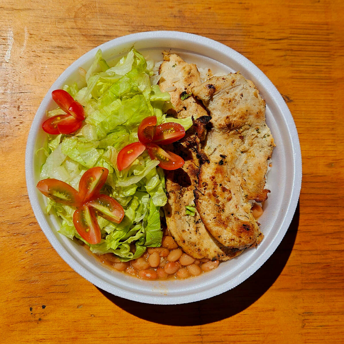 Leve dois file de frango grelhado com arroz e feijão, acompanha salada!