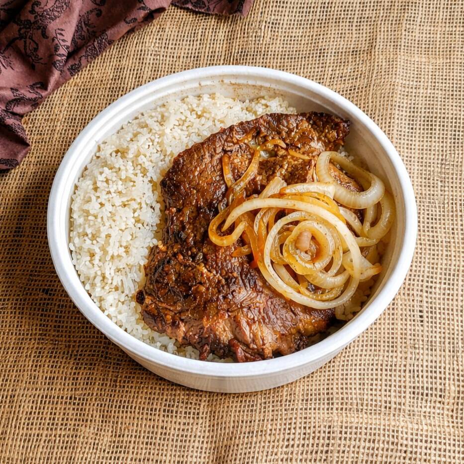 Delicioso contrafilé acebolado a Brasileira