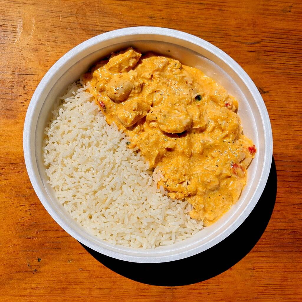 Strogonoff de frango com arroz, escolha seu complemento nos extras.