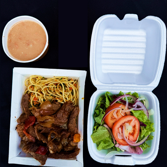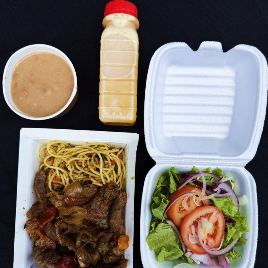 Padrão 1 Pessoa ( Arroz , Feijão, Tirinhas de Carne Com Cebolas, Macarrão da Vovó e Salada) + Suco de Laranja 200ml.