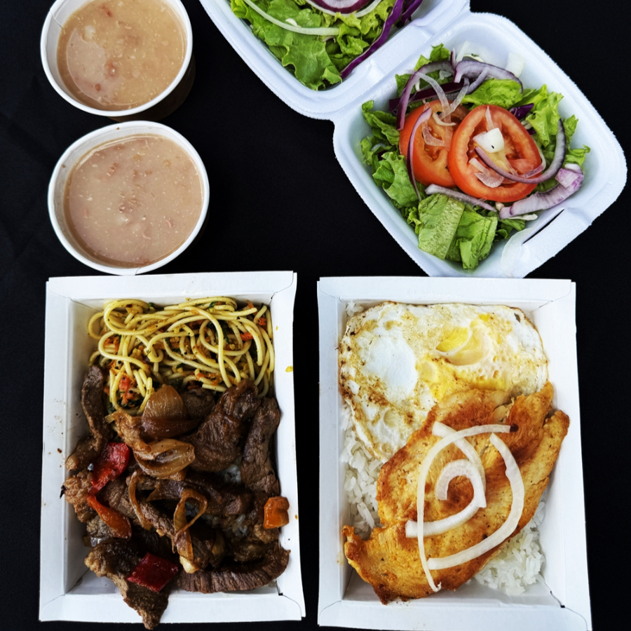 2 Marmitas (Arroz , Feijão, Tirinhas de Carne Com Cebolas, Macarrão da Vovó e Salada) + Coca Cola 600ml