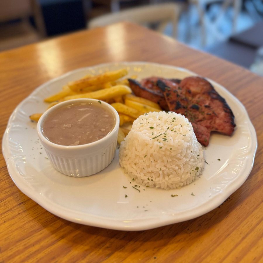 Acompanha: Arroz, Feijão, Batata Frita e Salada.