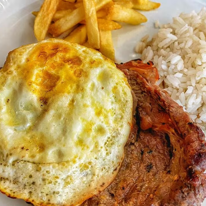 Acompanha: Arroz, Feijão, Ovo, Batata Frita e Salada.
