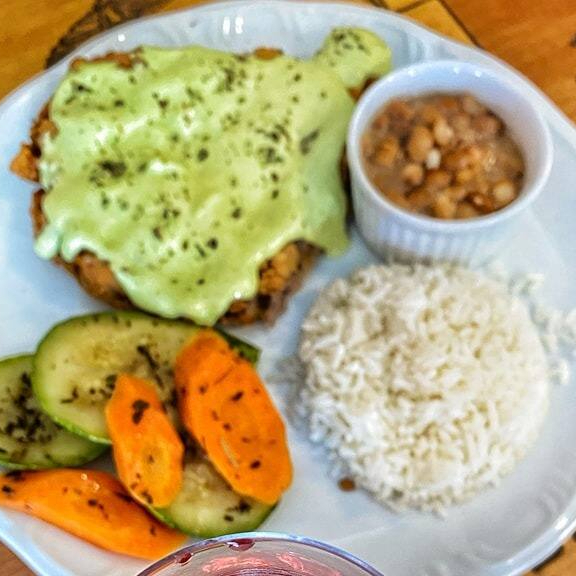 Acompanha: Arroz, Feijão, Legumes, Molho Catuporó e Salada.
