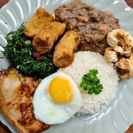 Acompanha: arroz,feijão tutu,bisteca,ovo frito,couve e farofa