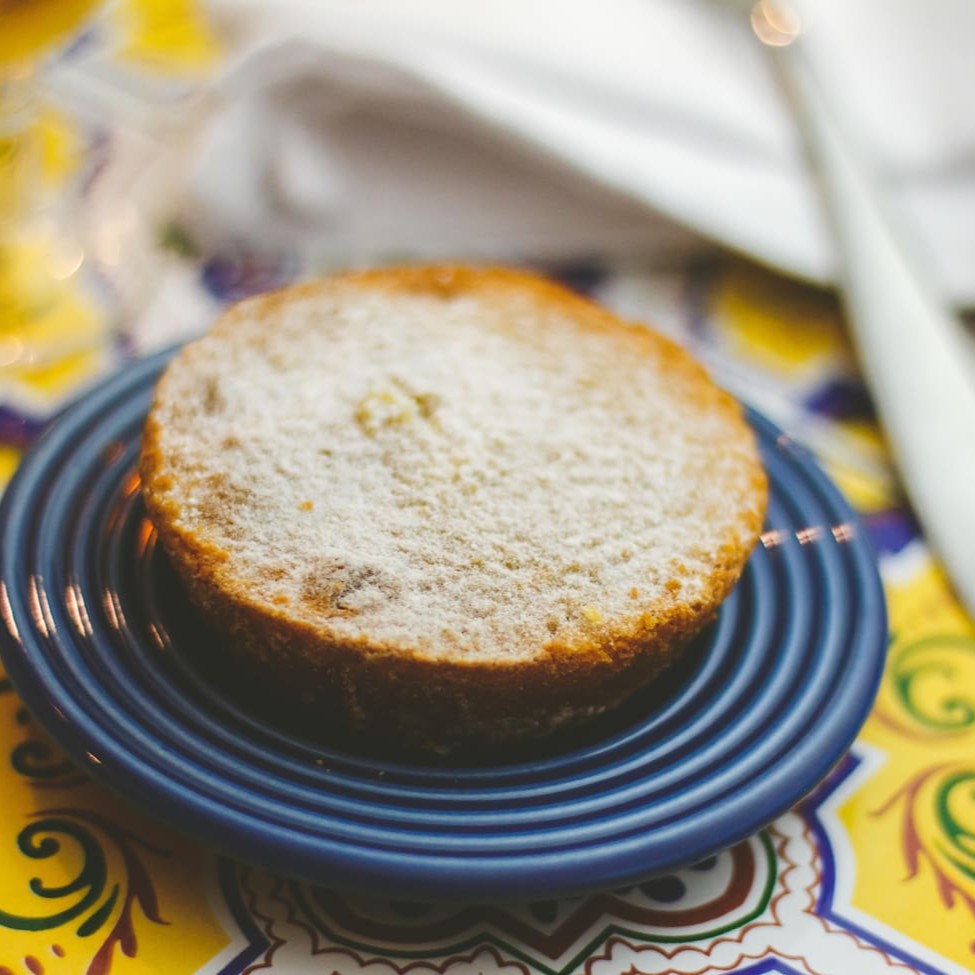 Tortinha com massa fofa a base de amêndoas.